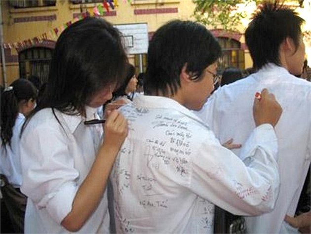 Vào những ngày cuối năm học, các bạn học sinh thường viết lên áo nhau những dòng lưu bút đặc biệt