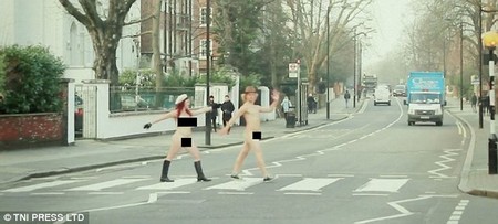Băng qua con đường Abbey ở London (Anh) để tái hiện lại hình ảnh nổi tiếng gắn liền với ban nhạc The Beattles